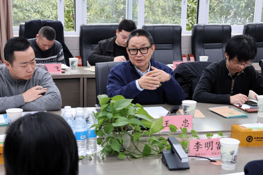 座谈中,副校长李明富对王忠教授一行来访表示热烈欢迎。他介绍了学校的基本情况,并重点介绍了我校研发平台及围绕“四特”进行科研项目布局情况。王忠教授详细介绍了辐照技术在消毒灭菌、材料改性、环境治理、生物医用等领域的发展历程与产业应用,列举了不同能级辐照技术对纺织材料开展表面接枝、交联固化、反应聚合的创新优势,还介绍了清华大学在科技成果转化上的一些经验和做法。