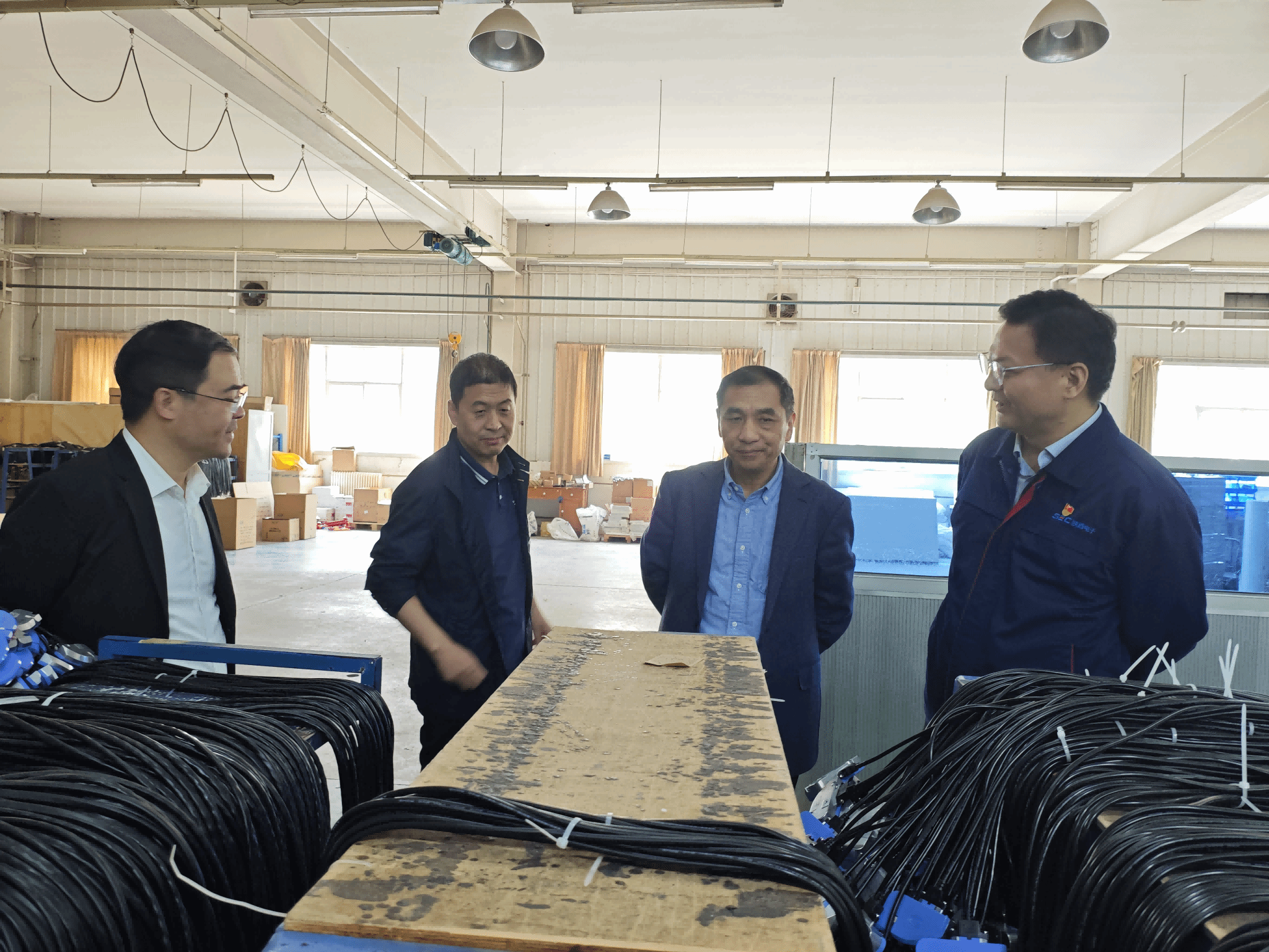 孙锐一行先后参观了长岭展厅、纺电数字化车间及装配车间。对长岭纺电公司多年深耕纺织电子与智能装备领域的发展历程、核心技术及产品体系进行详细了解,实地观摩智能验布机、高速喷气织机等高端纺织装备的生产制造与调试过程,充分感受长岭纺电公司以自主创新打破国外技术垄断、以智能制造引领产业变革的硬核实力,对长岭纺电公司在国产高端纺织装备研发、技术成果转化、服务行业技术升级等方面的突出贡献,以及在推动纺织产业高质量发展中的标杆作用给予高度赞扬。