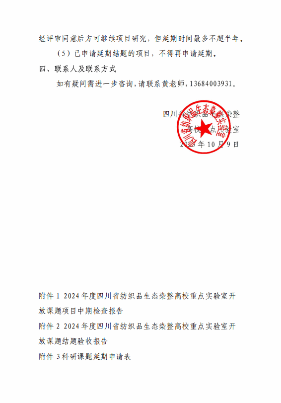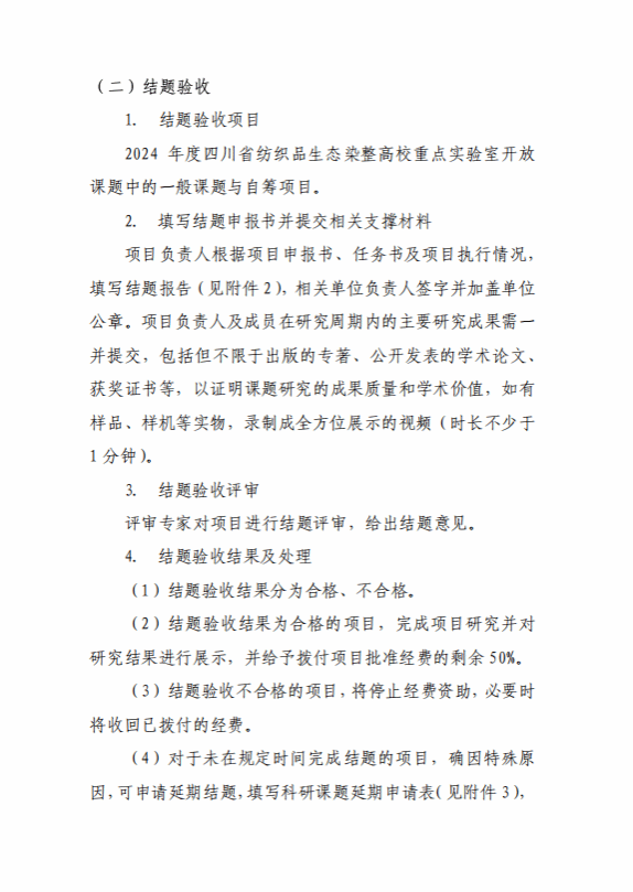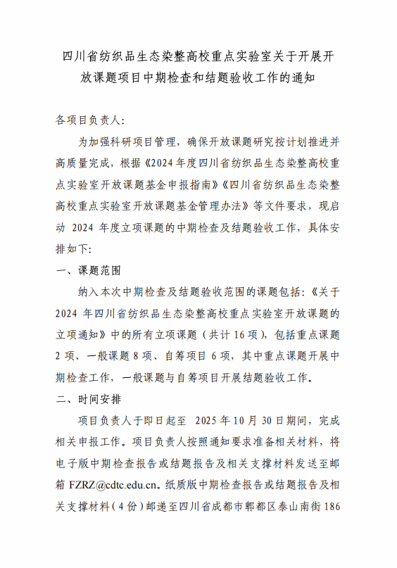 四川省纺织品生态染整高校重点实验室关于开展开放课题项目中期检查和结题验收工作的通知