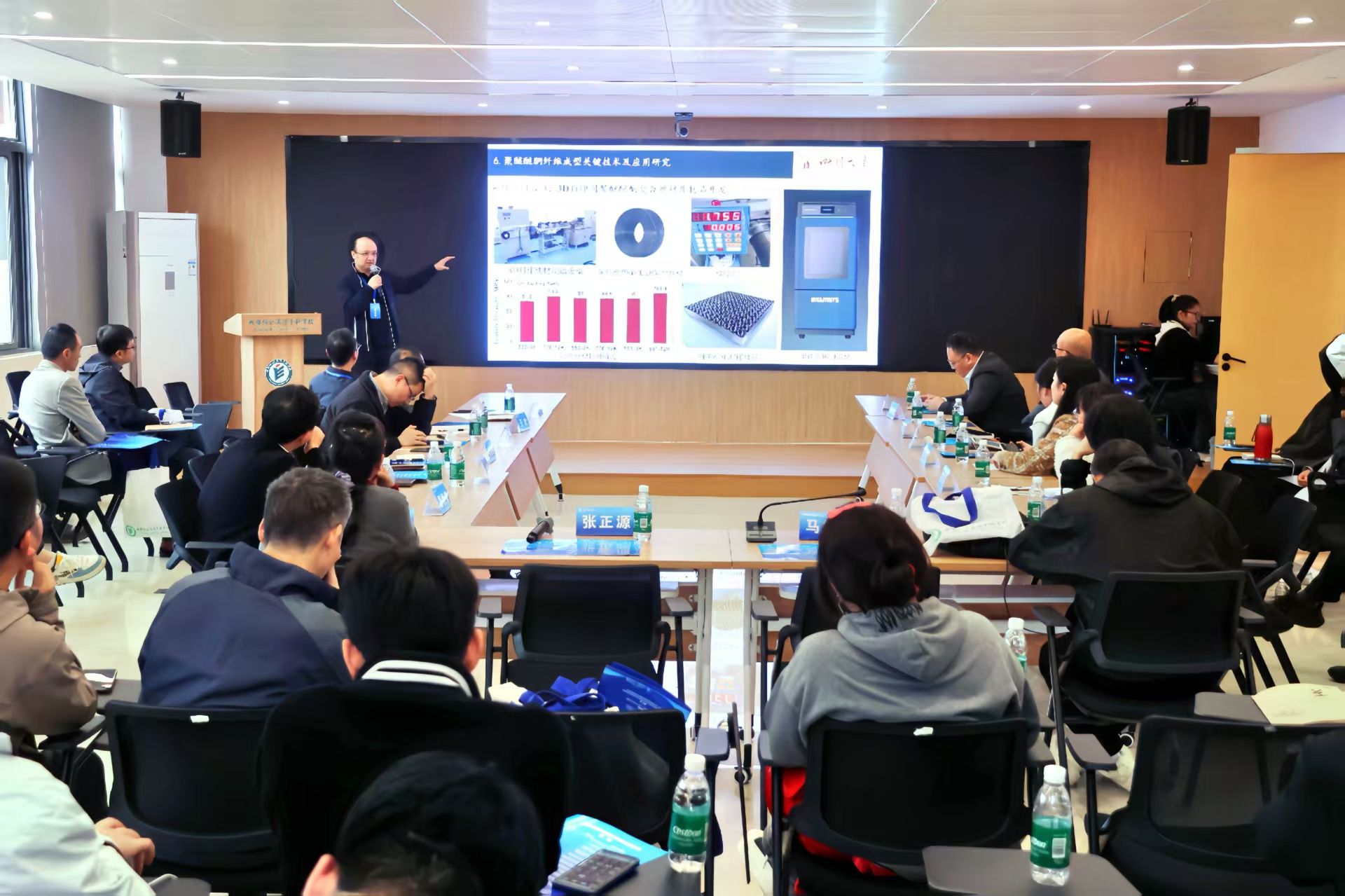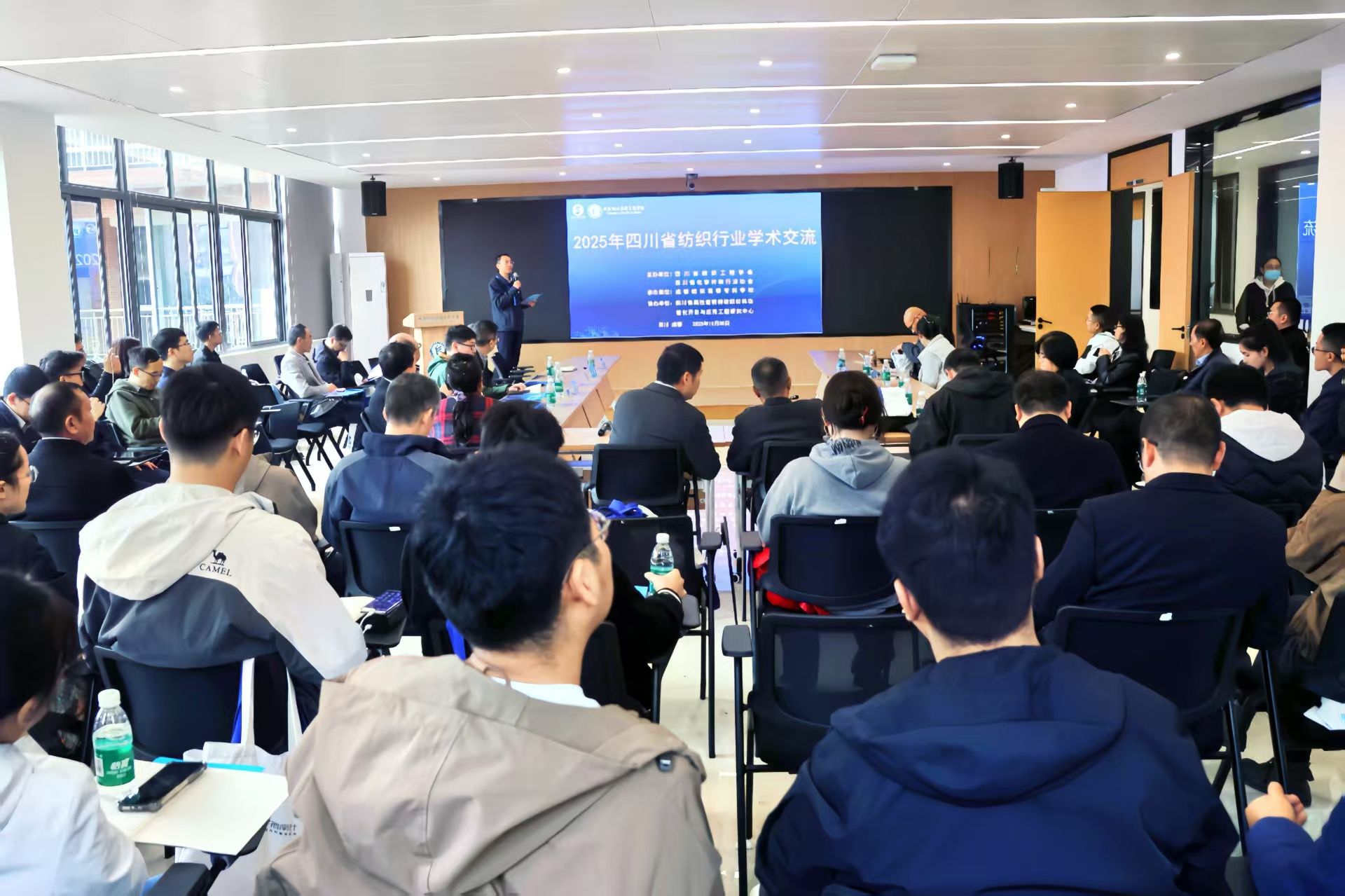 2025年10月30日,四川省纺织行业学术交流会在我校四川省高性能特种纺织材料功能化开发与应用研究工程中心学术报告厅顺利召开。本次学术交流由四川省纺织工程学会、四川省化学纤维行业协会主办,我校负责承办,四川省高性能特种纺织材料功能化开发与应用研究工程中心协办。四川省纺织工程学会副理事长、四川大学陈胜教授主持了此次交流活动。活动旨在深入探讨四川省纺织产业的科技应用及其前沿发展趋势。